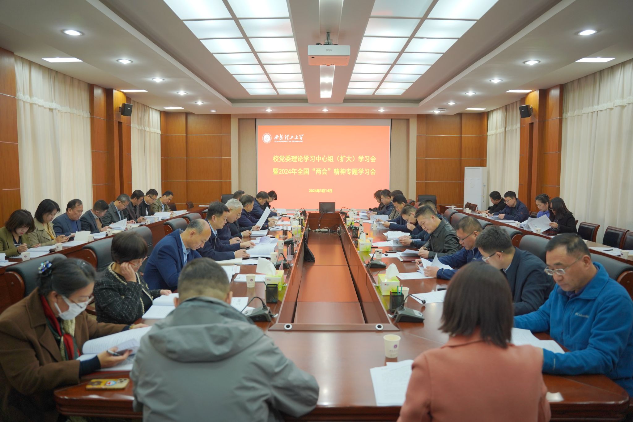 3月14日,學校在金花校區101會議室召開校級黨委理論學習中心組(擴大)學習會暨傳達2024年全國兩會精神專題學習會。校黨委書記李智軍主持會議並講話。